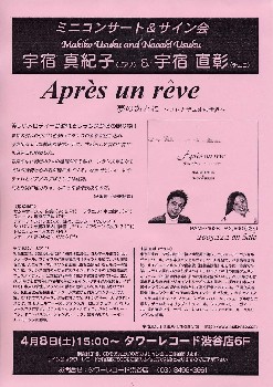 何故こんな話をしているかというと、4月に日本にコンサートのために帰国するんだけど、帰って早々、4月8日 (土) 3時から東京渋谷のタワーレコードでCDのイベントがあるんです!