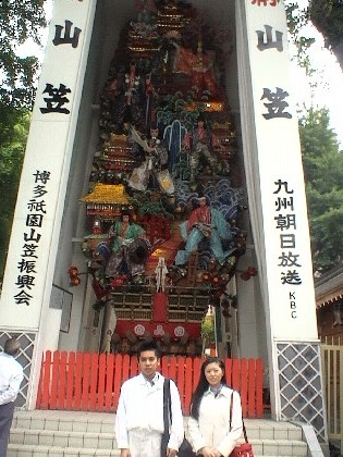今日の写真は、「櫛田神社」に飾ってある「山笠」です。すごく大きくて、ビックリしましたぁ!!