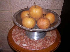 昨年の秋はレコーディングのために日本にいたので、「20世紀」の梨をいっぱい食べましたが、今フランスで売っている日本の梨は、色が茶色っぽい梨なので、これは多分「豊水」という品種じゃないかと思います。