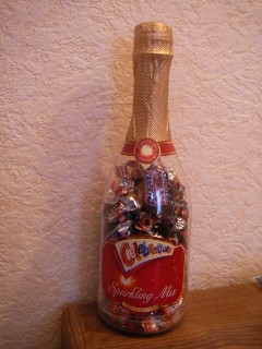 ・・・というのはウソで、シャンパンの形をしたボトルにびっしり入ったチョコレート♪