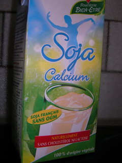 日本の豆乳は手に入らないけど、とにかく、「わぁ~!フランスにも豆乳があった~♪」と試しに1本「カルシウム豆乳」を買ってきて、パックの裏を見たら・・・