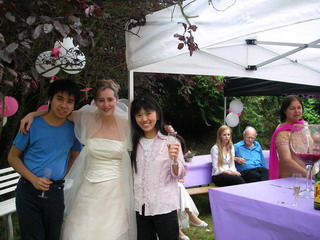 業者に頼んで庭にテントを張り、テーブルや椅子をセットしてもらって、賑やかにシャンパンで乾杯でした!