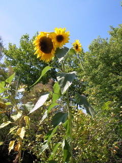 8月30日のブログに載せた「ひまわり」が、なんと今日までに3つの花をつけました☆