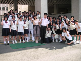 帰りに、合唱コンクールの練習を始めていた生徒たちと一緒に校庭でパチリ☆