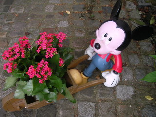 ミッキーマウスが花かごを押しているんです。かわいいでしょ!