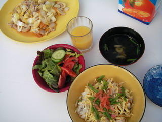 暑い夏に、庭のテーブルで食べるお寿司も格別でちゅよ (o^-^o)♪