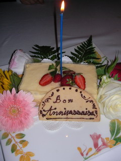 デザート前には、お店の人たちがバースデーケーキを運んできて下さって、皆で祝って下さいました (^-^)-☆