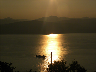 1:函館山からの夕日の帯に浮かぶ漁船 (ISO-64 , f/7.1 , 1/2000秒 )