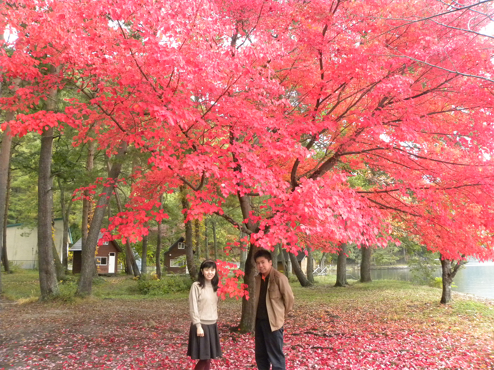 木崎湖の真っ赤な”かえで”も、北安曇野の中でも数本しかない特別な赤色のかえでのようですが、丁度紅葉の見ごろの日に見ることが出来て、幸せでした。