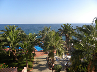 ホテルでの食事も、毎食をエーゲ海の水平線に目をやりながら、ヤシの木やソテツを眺めていると、ちょっと「007 ジェームズ・ボンド」の映画にでも登場しているような気分になりました。