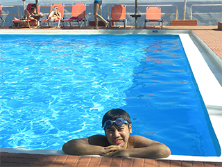④ホテルのプールで!