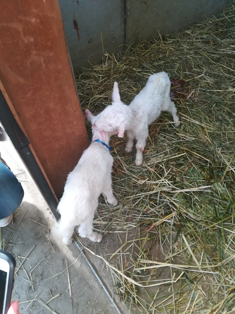 私たちがヤギ小屋へ見に行った時には、もうチョコチョコ自分の足で歩いていました。